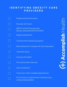 Ready to learn more about medical obesity care? Schedule a consultation with an Accomplish Health physician today.
